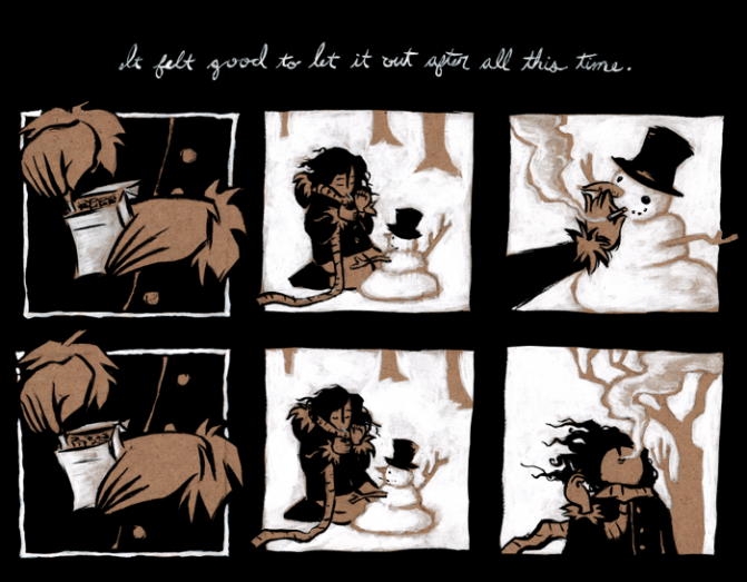 Mara Sternberg works at an emergency veterinary hospital, models in the Keyhole Sessions erotic life drawing class, does paste-up graffiti, and gardens illegally. With her time in between she makes small comics about snow and Batman, which can be found at www.steeltoedblues.com.